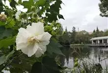 木芙蓉,锦葵科木槿属落叶灌木或小乔木。小枝上有细绒毛;叶片为卵状心形,托叶为披针形,常早落;花单生,花萼为钟形,花冠初为白色或淡红色,后逐渐变为深红色;果实为扁球形,有淡黄色的毛附着。花期8到10月。…全部>>