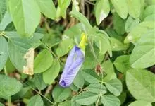 蝶豆是豆科蝶豆属植物。攀援状草质藤本。茎、小枝细弱,被脱落性贴伏短柔毛。叶长2.5-5厘米;托叶小,线形,长2-5毫米;叶柄长1.5-3厘米。花大,单朵腋生;苞片2,披针形。荚果长5-11厘米,…全部>>