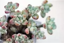 蓝豆是景天科、风车草属的多年生植物,多肉植物。植株叶片覆白粉,呈淡蓝色,在温差大、日照充足的环境下叶泛橙色或粉紫色。花五瓣,底色白,有红色斑纹。墨西哥多地有分布,…全部>>