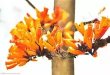 火烧花 Kurz)是紫葳科火烧花属常绿乔木;树皮光滑;叶为奇数羽状复叶对生,小叶卵形或卵状披针形,先端长渐尖,两面无毛;花短总状花序具,着生于老茎或侧生短枝,花序梗长;花萼佛焰苞状,一边开裂,…全部>>