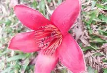 木棉是锦葵科、木棉属落叶大乔木,树皮灰白色,幼树的树干通常有圆锥状的粗刺;分枝平展。掌状复叶,小叶5-7片,长圆形至长圆状披针形,花单生枝顶叶腋,通常红色,有时橙红色,直径约10厘米;萼杯状,…全部>>