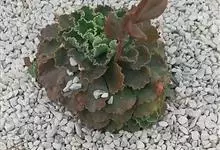 女王花笠,又名扇贝石莲花、女王花舞笠,是景天科拟石莲花属的多肉植物。由美国加利福尼亚州的育种师Dick Wright于1964年培育。特征是呈大波浪状褶皱的红色叶缘和气质高贵的粉紫色调。…全部>>