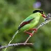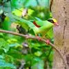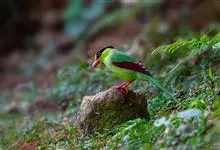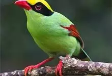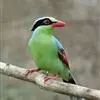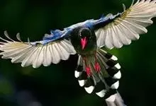 蓝绿鹊:中型鸟类,共有5个亚种。体长36-38厘米。尾长,嘴、脚红色。通体羽色主要为草绿色,宽阔的黑色贯眼纹向后延伸到后颈,在绿色的头侧极为醒目。两翅栗红色,内侧飞羽具黑色次端斑和白色尖端。尾绿色,…全部>>