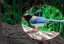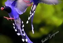 台湾蓝鹊:体长64至65厘米,翼展18至21厘米,尾长约40厘米,尾羽长占了总体长的三分之二。头、脸、颈、喉、胸都是黑色,黄色的眼珠包围黑色的瞳孔,鲜红色的鸟喙、双脚,…全部>>