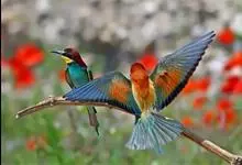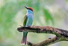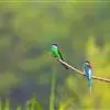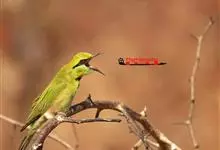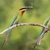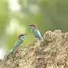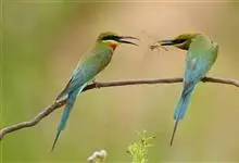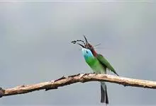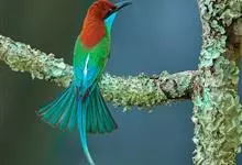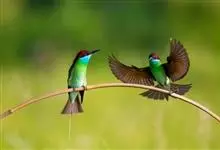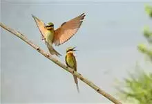 蓝颊蜂虎:是蜂虎科、蜂虎属的鸟类,共有2个亚种。体长27-33厘米,翼展46-49厘米,体重38-50克。嘴形细长而下弯,先端尖,…全部>>