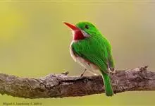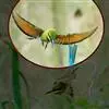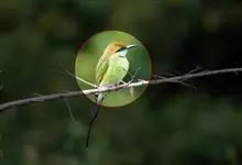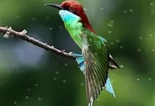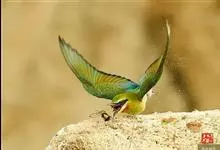 栗喉蜂虎是蜂虎科蜂虎属的鸟类。有热带鸟类羽毛艳丽的特征:喉部是栗红色的,黑色的过眼纹,翅膀和背部是绿色的,尾翼是蓝色的,飞行时翅膀下面的羽毛是橙黄色的,在阳光的照射下,它们全身闪烁着金属般的艳丽光泽,…全部>>