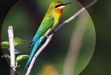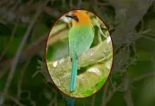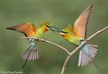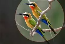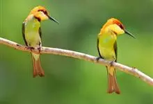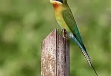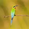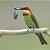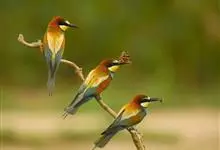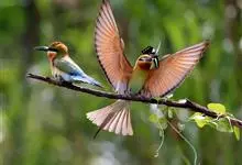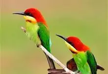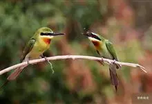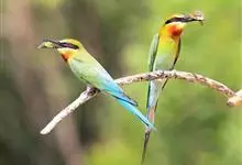 蓝颊蜂虎:是蜂虎科、蜂虎属的鸟类,共有2个亚种。体长27-33厘米,翼展46-49厘米,体重38-50克。嘴形细长而下弯,先端尖,…全部>>
