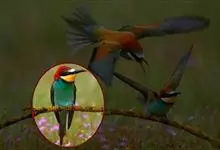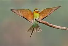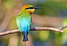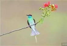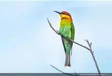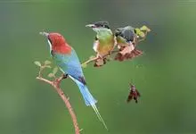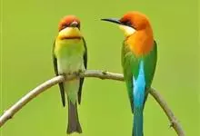 蓝颊蜂虎:是蜂虎科、蜂虎属的鸟类,共有2个亚种。体长27-33厘米,翼展46-49厘米,体重38-50克。嘴形细长而下弯,先端尖,…全部>>