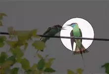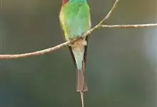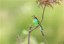 绿喉蜂虎是佛法僧目、蜂虎科的小型鸟类,共有9个亚种。身长22-25厘米,翼展29-30厘米,体重15-20克。喉绿色,额部、头顶至上背为锈红色,其余上体均为亮绿色。中央尾羽延长且端段狭细,…全部>>