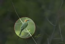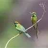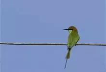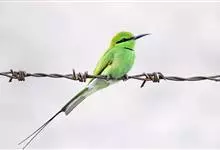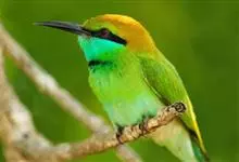绿喉蜂虎是佛法僧目、蜂虎科的小型鸟类,共有9个亚种。身长22-25厘米,翼展29-30厘米,体重15-20克。喉绿色,额部、头顶至上背为锈红色,其余上体均为亮绿色。中央尾羽延长且端段狭细,…全部>>