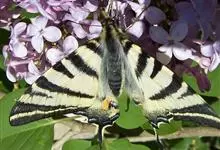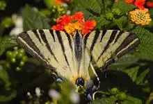 中华虎凤蝶是鳞翅目凤蝶科虎凤蝶属昆虫。双翅颜色为黄底黑纹,色如虎皮;雌、雄斑纹相同,但雌蝶的黄色往往要略深一些;后翅外缘呈波浪状,长有较短的尾突;除翅外,整体黑色,…全部>>
