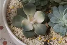 蓝石莲是景天科、拟石莲花属的多肉植物。茎部粗壮,成熟植株茎部木质化。叶片莲座型密集排列,株径不会很大,叶片相对较薄,常年绿色,表面布有白色粉末,中部凹陷,呈倒水滴状。叶尖较尖,叶缘光滑无褶皱,…全部>>