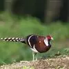 白颈长尾雉:大型鸡类,体长81厘米,体型大小和雉鸡相似。雄鸟头灰褐色,颈白色,脸鲜红色,其上后缘有一显著白纹,上背、胸和两翅栗色,上背和翅上均具1条宽阔的白色带,极为醒目;下背和腰黑色而具白斑;腹白…全部>>