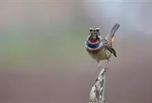 蓝点颏亦称“蓝喉歌鸲”,通称蓝靛颏儿。身体大小和麻雀相似,体长12-13厘米,体重17-18克。头部、上体主要为土褐色。眉纹白色。尾羽黑褐色,基部栗红色。颏部、喉部辉蓝色,下面有黑色横纹。下体白色。…全部>>