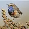 蓝点颏亦称“蓝喉歌鸲”,通称蓝靛颏儿。身体大小和麻雀相似,体长12-13厘米,体重17-18克。头部、上体主要为土褐色。眉纹白色。尾羽黑褐色,基部栗红色。颏部、喉部辉蓝色,下面有黑色横纹。下体白色。…全部>>