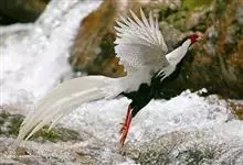白鹇,是鸡形目雉科鹇属的一种留鸟。雄鸟上体白色并具黑色纹,下体黑色,头顶具黑色长羽冠,尾白而长;雌鸟体型较小,以橄榄褐色为主,下体具白色或皮黄色细纹;虹膜褐色,眼周具红色裸皮,喙黄色,脚鲜红色。…全部>>