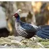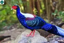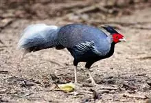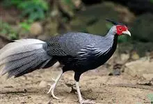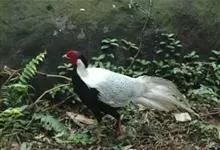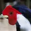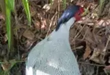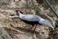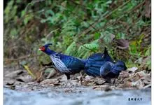 蓝鹇是雉科、鹇属一种大型雉类。体长50-80厘米。雄鸟头颈黑色,羽冠白色,有时杂以黑斑;脸红色,额部肉冠和脸部肉垂亦为红色;后颈和颈侧蓝黑色;肩赤红色;翅上覆羽及外侧次级飞羽黑色,…全部>>
