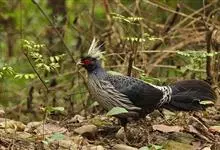 黑鹇是鸡形目雉科目鹇属鸟类,又称鸬雉、黑鸡。体型中等。雄鸟上体黑褐色,背羽具黑紫色金属光泽;头顶具黑羽冠;脸部裸皮呈红色,散生稀疏黑色纤羽;尾长而侧扁,中央两对尾羽红褐色,…全部>>