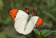 鹤顶粉蝶是鳞翅目粉蝶科鹤顶粉蝶属昆虫,又称端红蝶。雄蝶翅白色,前翅前缘及外缘黑色,自前缘二分之一处至外缘近后角处有黑色锯齿状斜纹,围住顶部三角形赤橙色斑,…全部>>