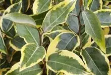 金边胡颓子是胡颓子科、胡颓子属植物。常绿灌木,高1—2米,树冠圆形开展,枝叶稠密,单叶互生,革质有光泽,椭圆形至长椭圆形,叶背面银白色并有锈褐色斑点,叶面深绿色,叶边缘镶嵌金黄色条状斑,…全部>>