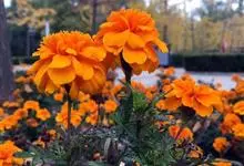 万寿菊是菊科万寿菊属一年生草本植物,别名孔雀菊、缎子花、臭菊花、西番菊、红黄草、小万寿菊、臭芙蓉、孔雀草。万寿菊茎近基部分枝。叶羽状分裂,长5-10厘米,宽4-8厘米,裂片长椭圆形或披针形,具锐齿,…全部>>