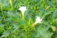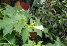 洋金花是茄科曼陀罗属植物,一年生草本植物,全株近于无毛。茎直立,圆柱形,高30~100cm,基部木质化,上部呈义状分枝。叶互生,上部的叶近于对生;叶柄长2~6cm,表面被疏短毛;叶片卵形、长卵形或心形,…全部>>
