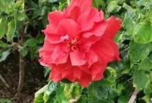 重瓣朱槿(酸醋花、月月开)锦葵目 > 锦葵科 > 木槿属 > 重瓣朱槿
