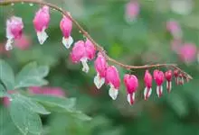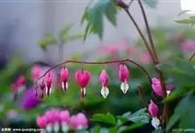 荷包牡丹 Fukuhara),是罂粟科荷包牡丹属的多年生草本植物,株高30-60厘米,具肉质根状茎;茎直立呈圆柱形;叶二回三出全裂,状似牡丹叶;总状花序顶生,基部为心形,花瓣紫红色至粉红色,稀白色,…全部>>