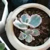江户紫,景天科伽蓝菜属草本植物,是多年生草本花卉。花白色,但栽培中很少能见到花,常作观叶植物栽培。…全部>>