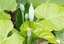 海芋 K. Koch),是天南星科海芋属的大型常绿草本植物;具匍匐根茎,有直立地上茎,基部生不定芽条;叶多数,亚革质,草绿色,箭状卵形,叶柄绿或污紫色,螺旋状排列,粗厚;花序梗圆柱形,绿色,有时污紫色,…全部>>