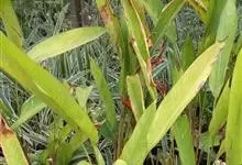 蝎尾蕉:蝎尾蕉科蝎尾蕉属植物多年生草本植物。株高可达260厘米。叶片长圆形,叶面绿色,叶背亮紫色;顶生花序,直立,薄被短柔毛;苞片绿色,开放时突露,花被片红色,顶端绿色,狭圆柱形,果三棱形,灰蓝色,…全部>>