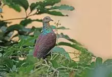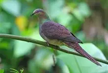 斑尾鹃鸠体长38厘米,是体大而尾长的褐色鹃鸠。背及尾满布黑色或褐色横斑。头灰,颈背呈亮蓝绿色。胸偏粉,渐至白色的臀部。雌鸟无亮绿色。背上横斑较密,尾部横斑有别于同地区的其他鹃鸠。不常见,…全部>>