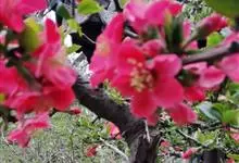 贴梗海棠 Nakai)是蔷薇科、木瓜海棠属植物。落叶灌木,高达2米,枝条直立开展,有刺。叶片卵形至椭圆形,稀长椭圆形,长3-9厘米,宽1.5-5厘米。花先叶开放,3-5朵簇生于二年生老枝上。…全部>>
