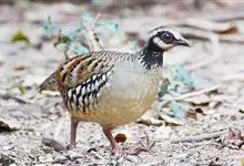 褐胸山鹧鸪:雄鸟体长22厘米,体重310克;雌鸟体长23厘米,体重220-275克。前额皮黄白色,头顶橄榄褐色。眼部的裸皮鲜红色,有一条宽阔的皮黄白色眉纹一直延伸到颈的侧部。上体亮橄榄褐色,具黑色横斑。…全部>>