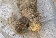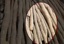 薯蓣是缠绕草质藤本。块茎为长圆柱形,垂直生长,长可达1米多,断面干时白色。茎通常带紫红色,右旋,无毛。单叶,在茎下部的互生,顶端渐尖,基部深心形、宽心形或近截形,边缘常3浅裂至3深裂。叶腋内常有珠芽。…全部>>