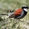 藏鹀:属小型鸣禽。喙为圆锥形,与雀科的鸟类相比较为细弱,上下喙边缘不紧密切合而微向内弯,因而切合线中略有缝隙;体羽似麻雀,此鹀以具有特殊的鲜红栗色背部,及上胸的黑带与下胸的纯灰色等形态特征,…全部>>