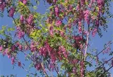 红花刺槐是豆科刺槐属的植物。其干皮深纵裂;枝具托叶刺,羽状复叶互生,叶片卵形或长圆形,具芒尖;基部圆形。花两性;总花序下垂;花冠粉红色,芳香;果条状长圆形,腹缝有窄翅。花期4~5月,果期9~10月。…全部>>