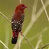 红梅花雀小型鸟类,体长9-10厘米。雄鸟通体朱红色,背、肩、胸等满布白色小斑点,两翅和尾黑褐色均具白色端斑,嘴红色,脚蜡黄色。雌鸟上体淡褐色或赭褐色,翅上中覆羽、大覆羽和内侧飞羽末端具白色斑点,…全部>>