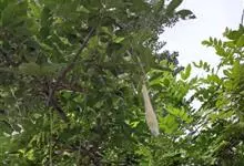 菠萝蜜是桑科波罗蜜属常绿乔木。老树常有板状根;叶革质,螺旋状排列,椭圆形或倒卵形;花雌雄同株,花序生于老茎或短枝上;果椭圆形至球形,成熟时黄褐色,核果长椭圆形;花期3-8月,果期6-11月。…全部>>