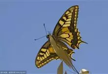 金凤蝶,是鳞翅目凤蝶科凤蝶属动物。金凤蝶为中型凤蝶,翅展70-84毫米,翅背面底色黑褐色,翅脉黑色,翅室具黄斑;前翅背面基部呈暗黄色,亚外缘为黑色,内具一列小黄斑;后翅背面亚外缘区具黑宽边,…全部>>