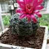 绯花玉 Speg.)是仙人掌科、裸萼球属多肉植物,植株呈扁球形,表皮墨绿色,刺针状,每个刺座有5枚灰色周刺,花生于球体顶端,夏季开花,花色有白、粉红、深红等。果实纺锤形,深灰绿色,种子黑色。…全部>>