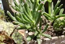 筒叶花月,是景天科青锁龙属的多年生草本植物。植株多分株,灌木状,茎较粗壮,圆柱形,表皮灰褐色;叶片肉质,互生,呈圆筒状,簇生于茎或分枝顶端,叶端呈斜截形,截面为椭圆形;花呈星状,淡白色;花期秋季。…全部>>