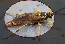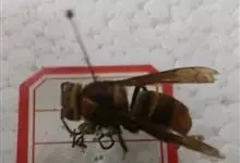 金环胡蜂是胡蜂科、胡蜂属昆虫。雌蜂体长约40毫米,工蜂体长25毫米,雌蜂体黑褐色,头部橙黄色,额片前缘弓形,中央凹,两边突出;触角12节,膝状,暗褐色;中胸背部中央有很细纵沟;翅膜质半透明,…全部>>