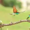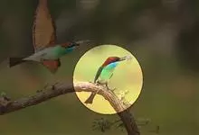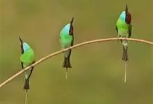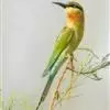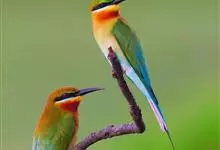 蓝颊蜂虎:是蜂虎科、蜂虎属的鸟类,共有2个亚种。体长27-33厘米,翼展46-49厘米,体重38-50克。嘴形细长而下弯,先端尖,…全部>>