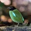 绿胸八色鸫:是雀形目八色鸫科的鸟类,共有12个亚种。体长为16-18厘米,体重65-69克。体型圆胖,尾短,腿长。头黑,上体绿色,两翼深色而具白色斑纹,头顶至后枕深褐,胸及腹部苹果绿,臀亮红。…全部>>