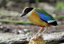 蓝翅八色鸫是雀形目八色鸫科的鸟类。体长17-20厘米,体重类约48-70克,体型圆胖,尾短,腿长,以身体具有红、绿、蓝、白、黑、黄、褐、栗等鲜艳夺目,丰富艳丽的色彩而得名,是很有观赏价值的鸟类。主要…全部>>
