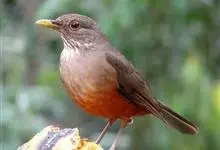 赤颈鸫是鸫科、鸫属中型鸟类,体长22-25厘米。上体灰褐色,有窄的栗色眉纹。颏、喉、上胸红褐色,腹至尾下覆羽白色,腋羽和翼下覆羽橙棕色。虹膜暗褐色,嘴黑褐色,下嘴基部黄色,脚黄褐色或暗褐色。…全部>>