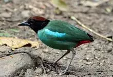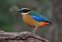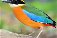 蓝翅八色鸫是雀形目八色鸫科的鸟类。体长17-20厘米,体重类约48-70克,体型圆胖,尾短,腿长,以身体具有红、绿、蓝、白、黑、黄、褐、栗等鲜艳夺目,丰富艳丽的色彩而得名,是很有观赏价值的鸟类。主要…全部>>