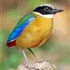 蓝八色鸫是雀形目八色鸫科的鸟类,体长约24厘米,体重109克左右。体型圆胖,尾短,腿长。羽色鲜艳,头顶两侧橘黄色的宽带延伸至颈背,宽宽的过眼纹黑色,脸颊皮黄,髭纹黑,尾亮蓝色。雌鸟较雄鸟色暗,…全部>>