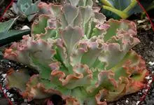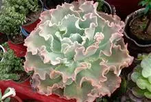 女王花笠,又名扇贝石莲花、女王花舞笠,是景天科拟石莲花属的多肉植物。由美国加利福尼亚州的育种师Dick Wright于1964年培育。特征是呈大波浪状褶皱的红色叶缘和气质高贵的粉紫色调。…全部>>
